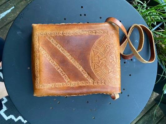 Tooled Aztec Leather Purse