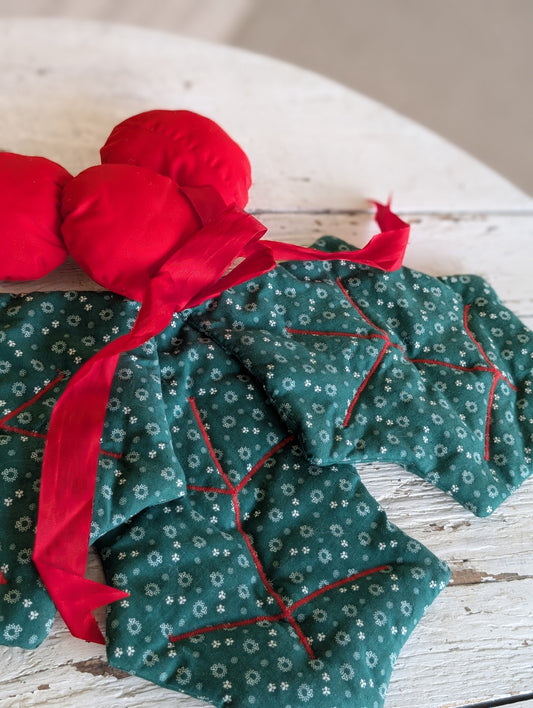 Set of 3 sewn holly leaves