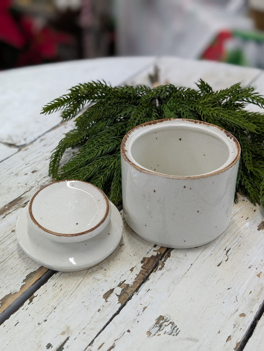 Tan ceramic container