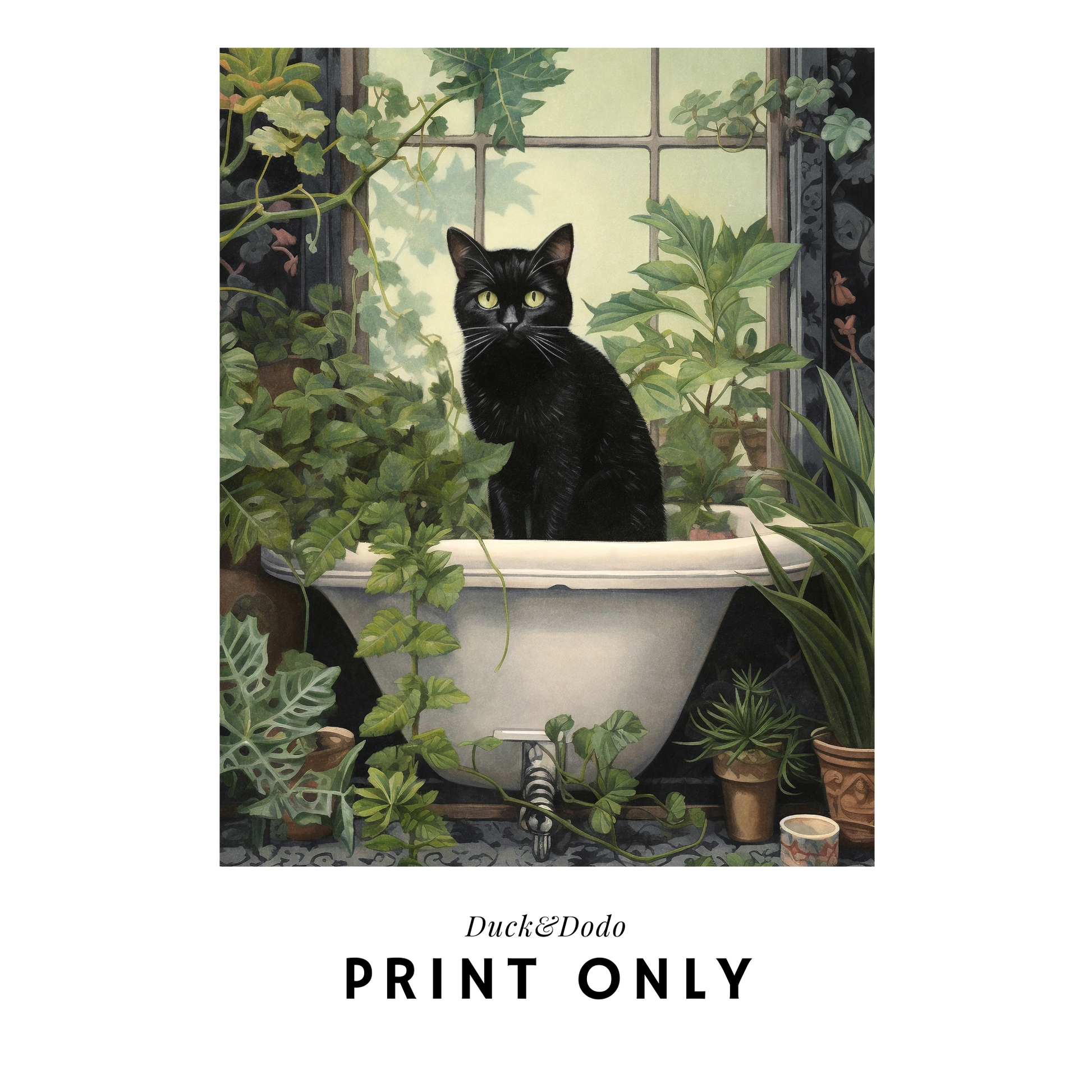 Black Cat in Tub Print