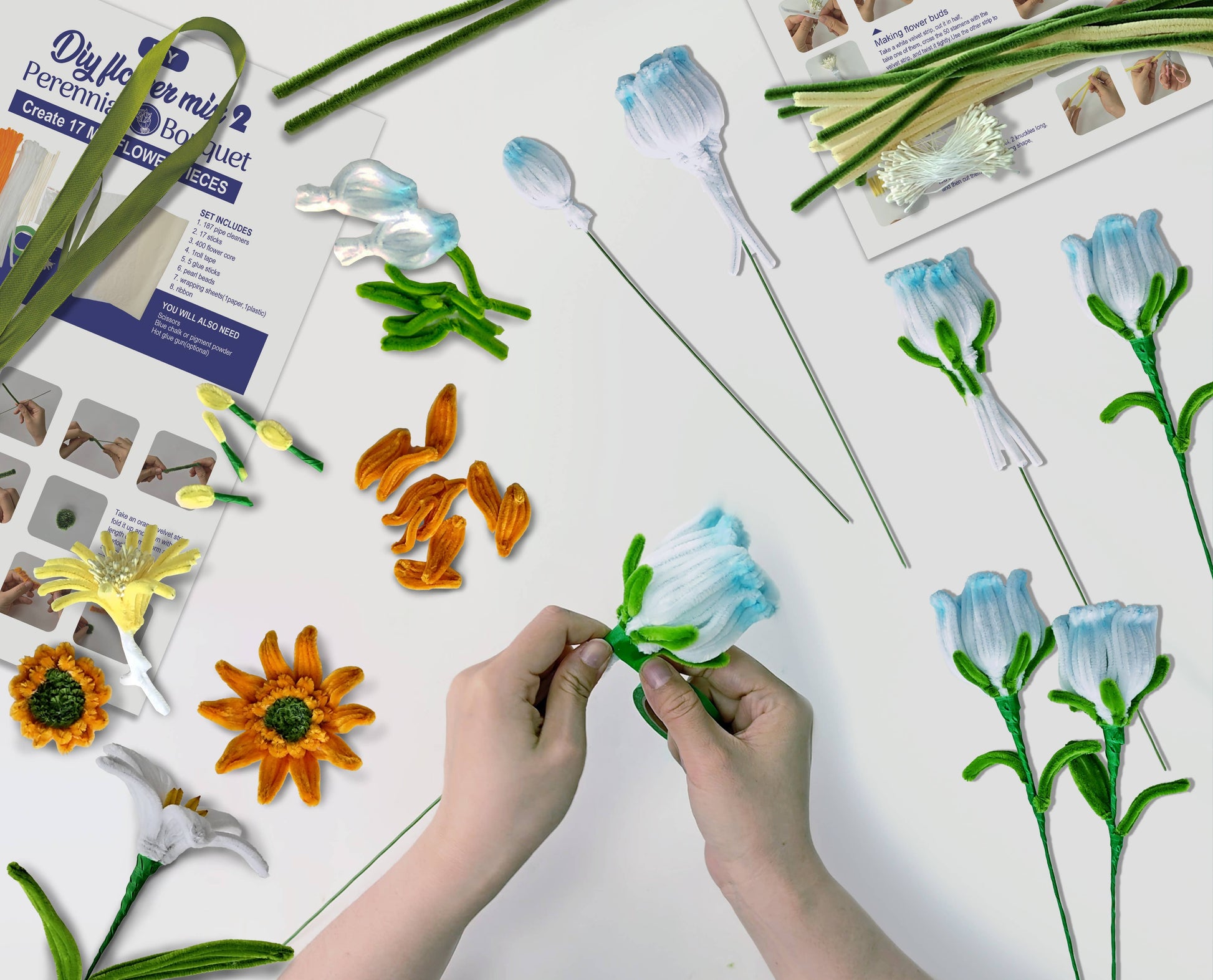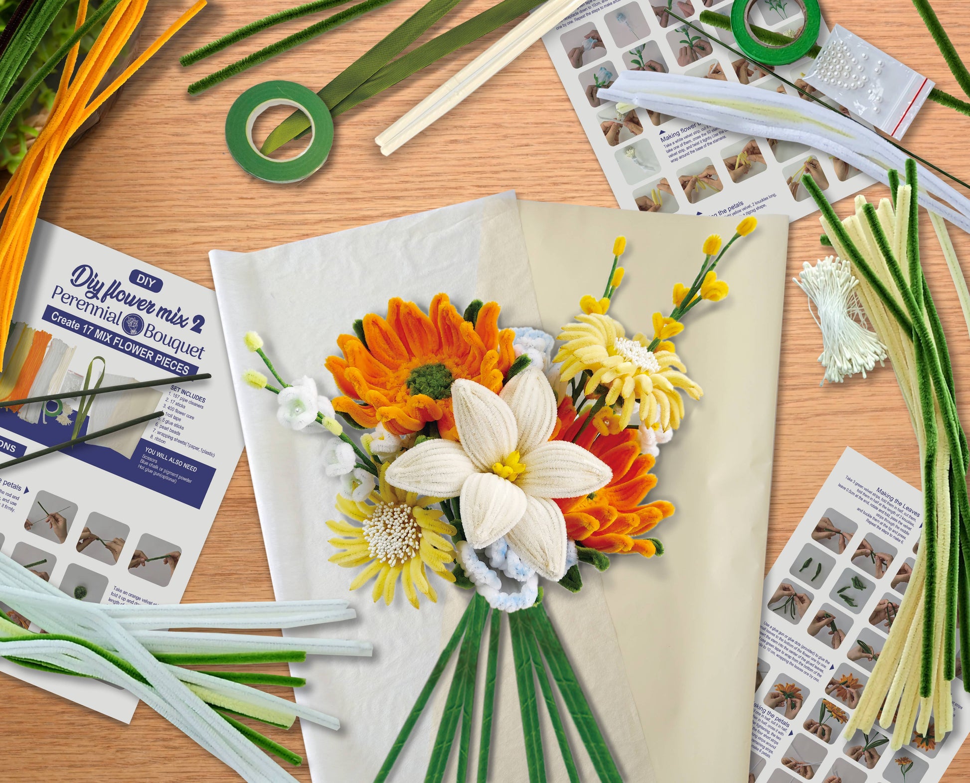 DIY Chenille Flower Bouquet Kit – Orange Mix