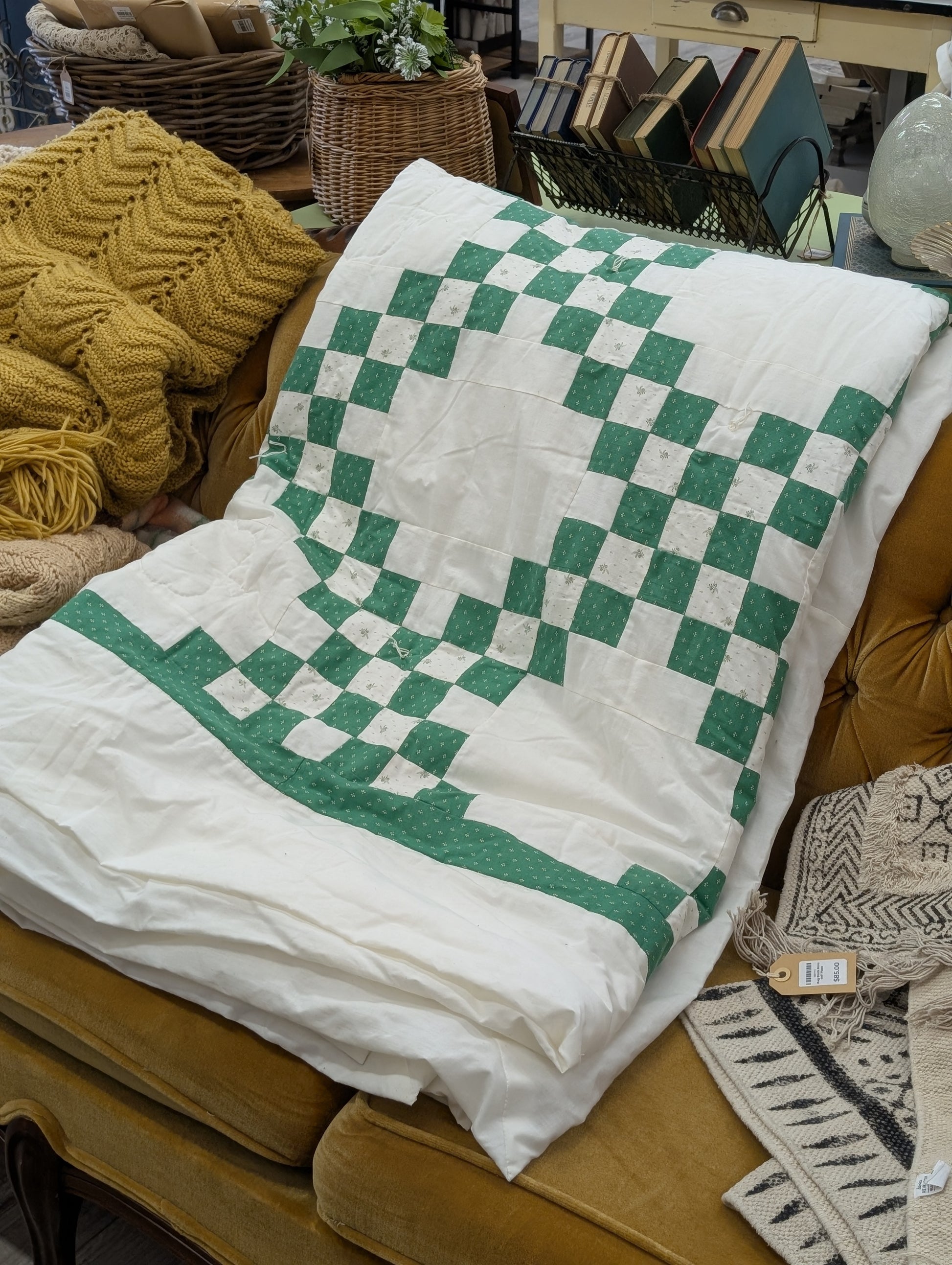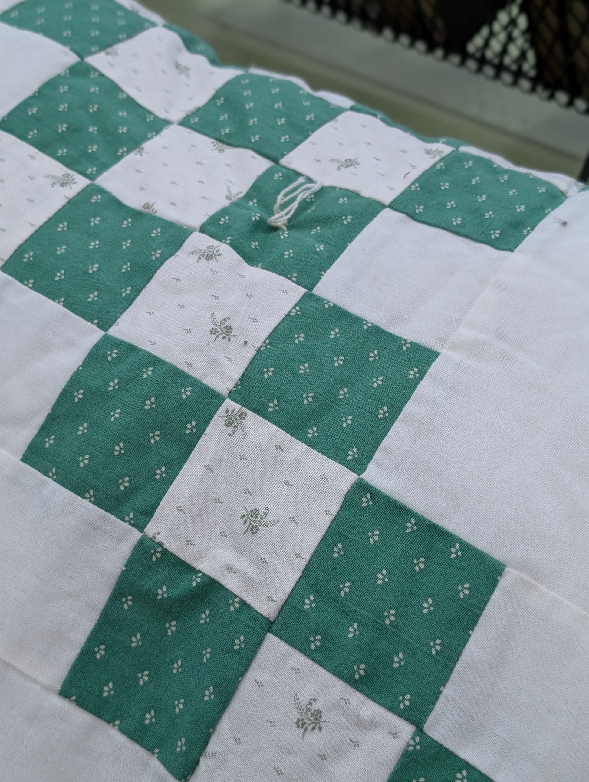 Green and white quilt
