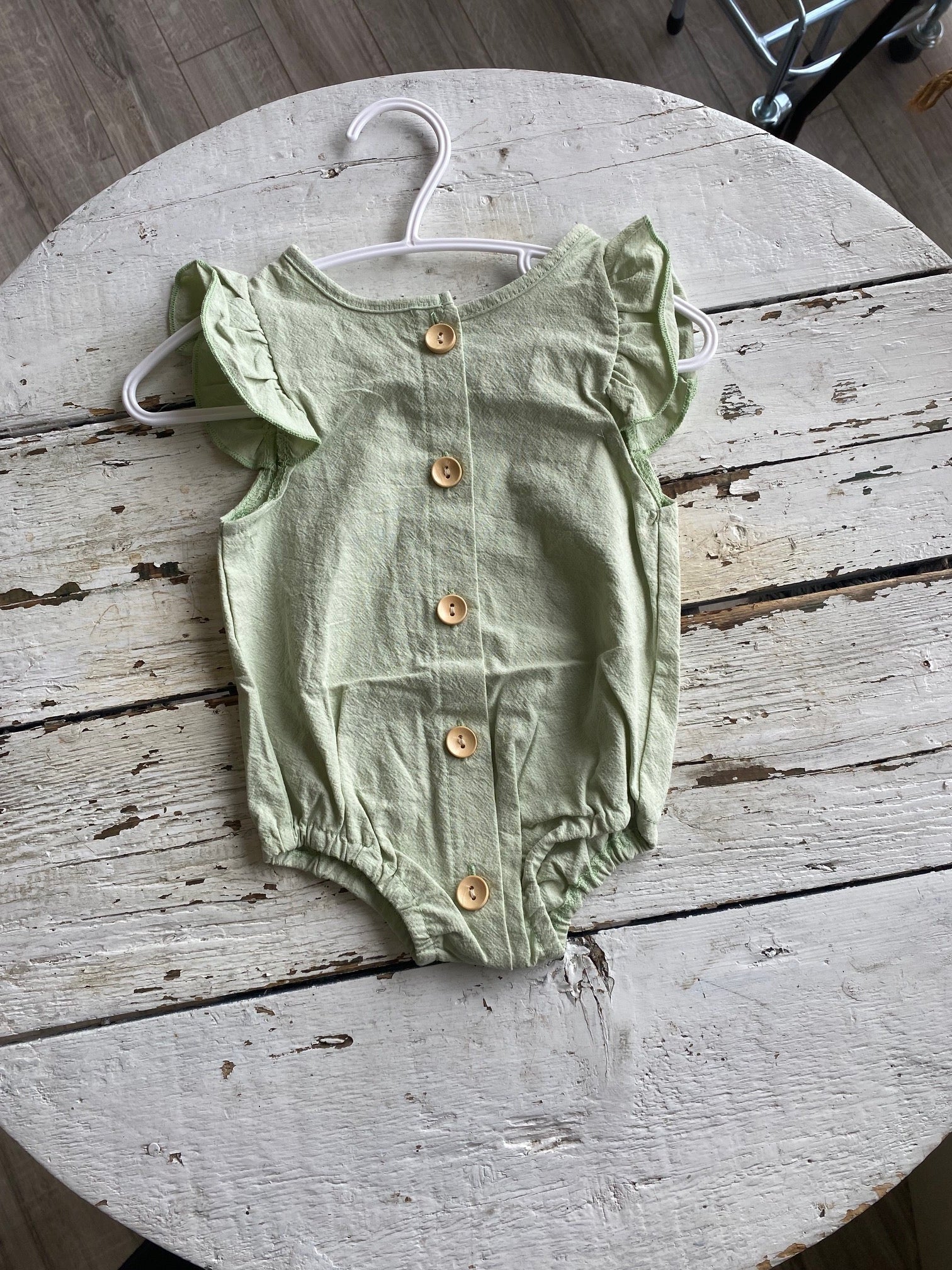 Green w Ruffle Sleeve Baby Romper