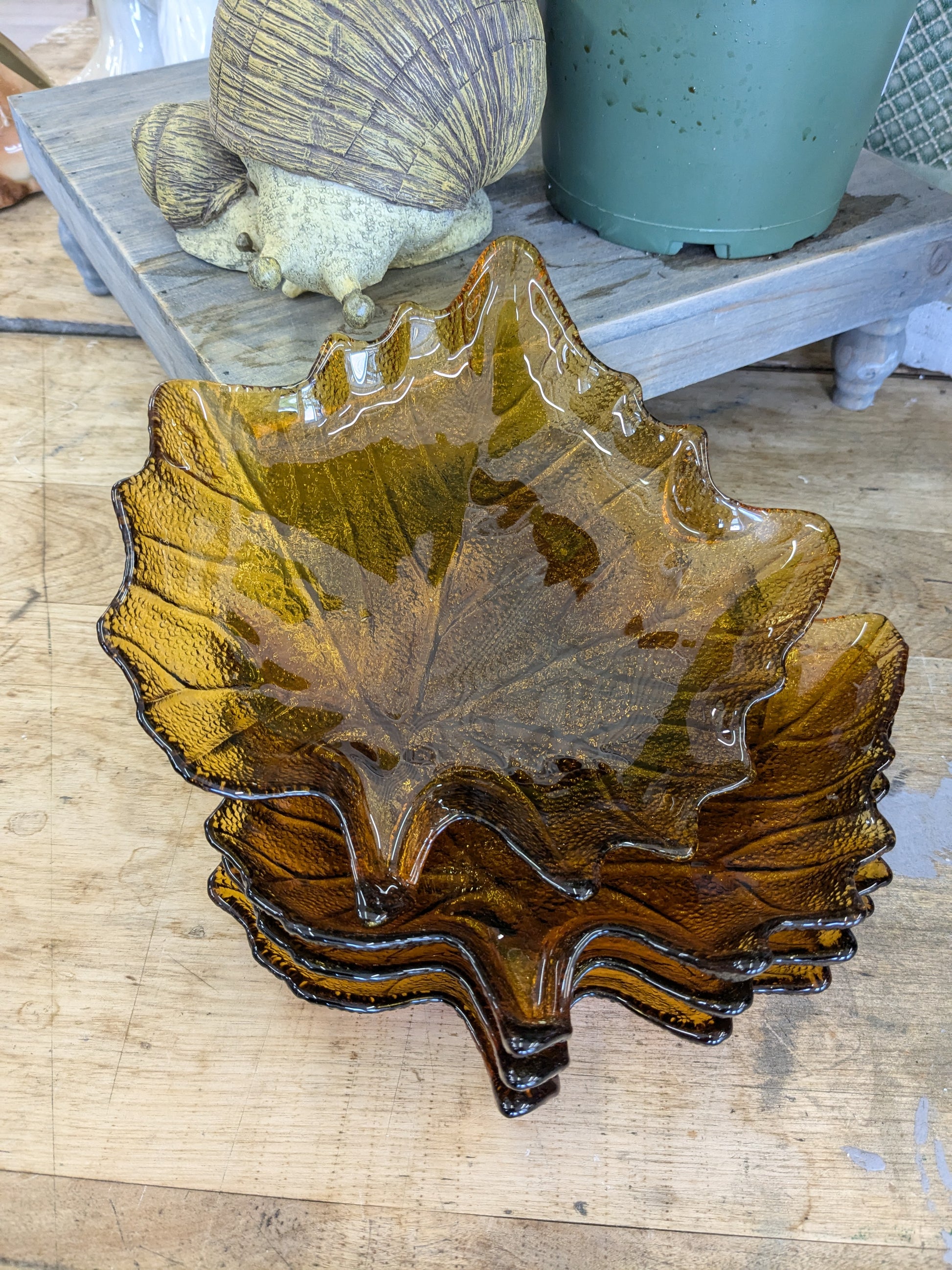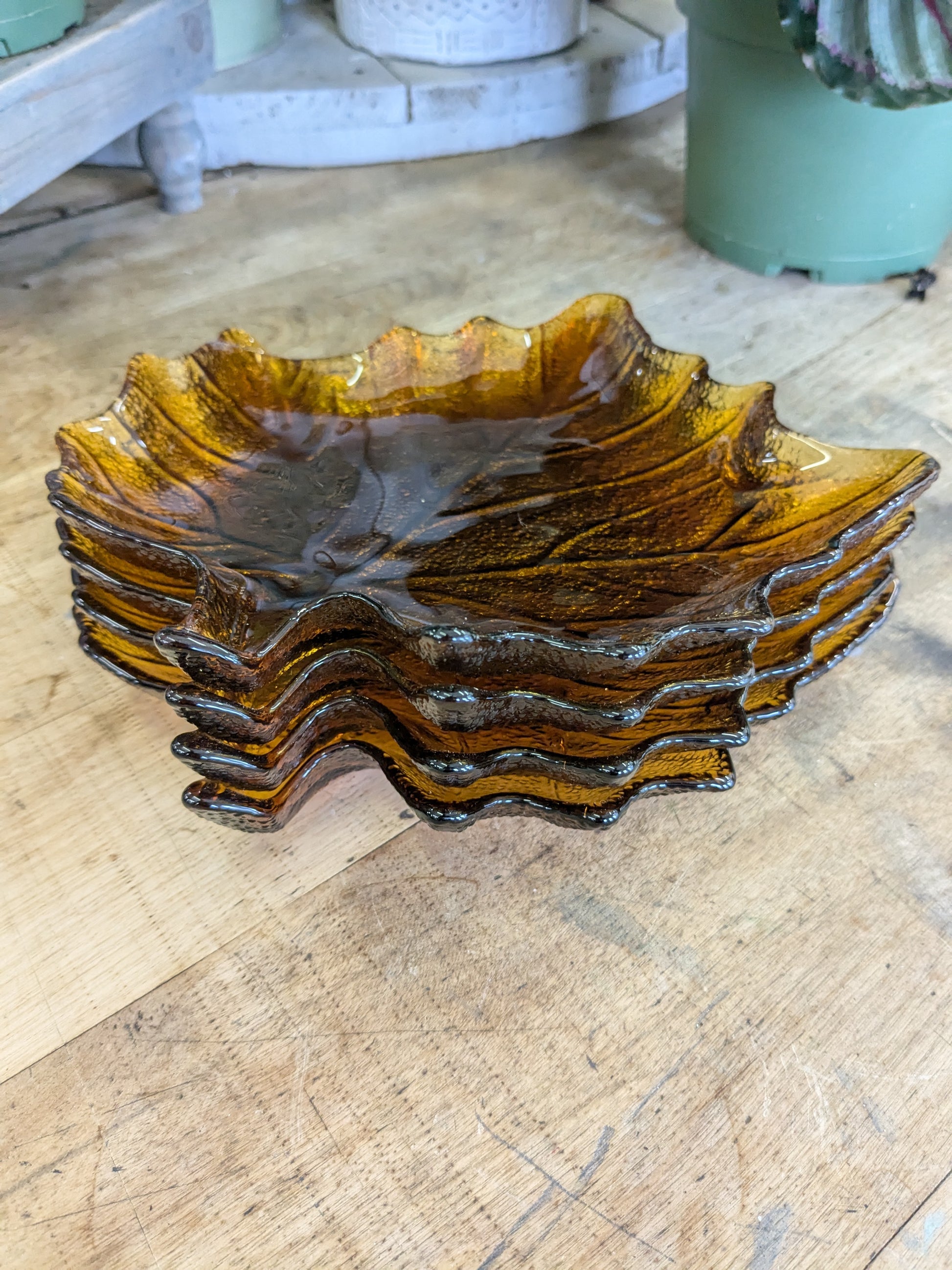 Set of 4 glass leaf plates