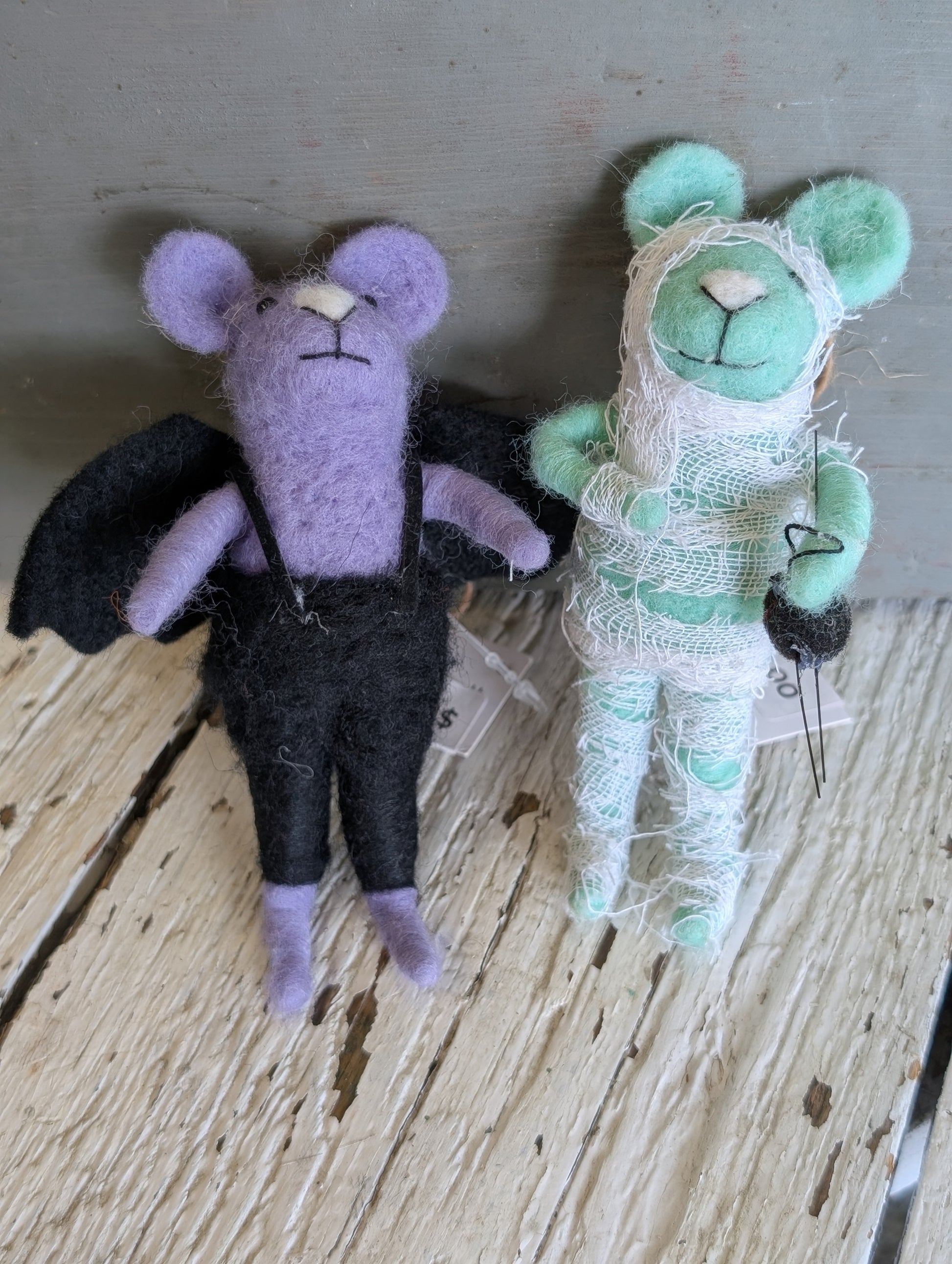 Add some spunk and spice to your spooky decor with these delightful Mice in Halloween Costume figurines. Available in three assorted styles, each of these plush mice is festively dressed in a spiffy Halloween costume — from vampire to mummy or pumpkin — for a playful complement to all your Halloween decor.