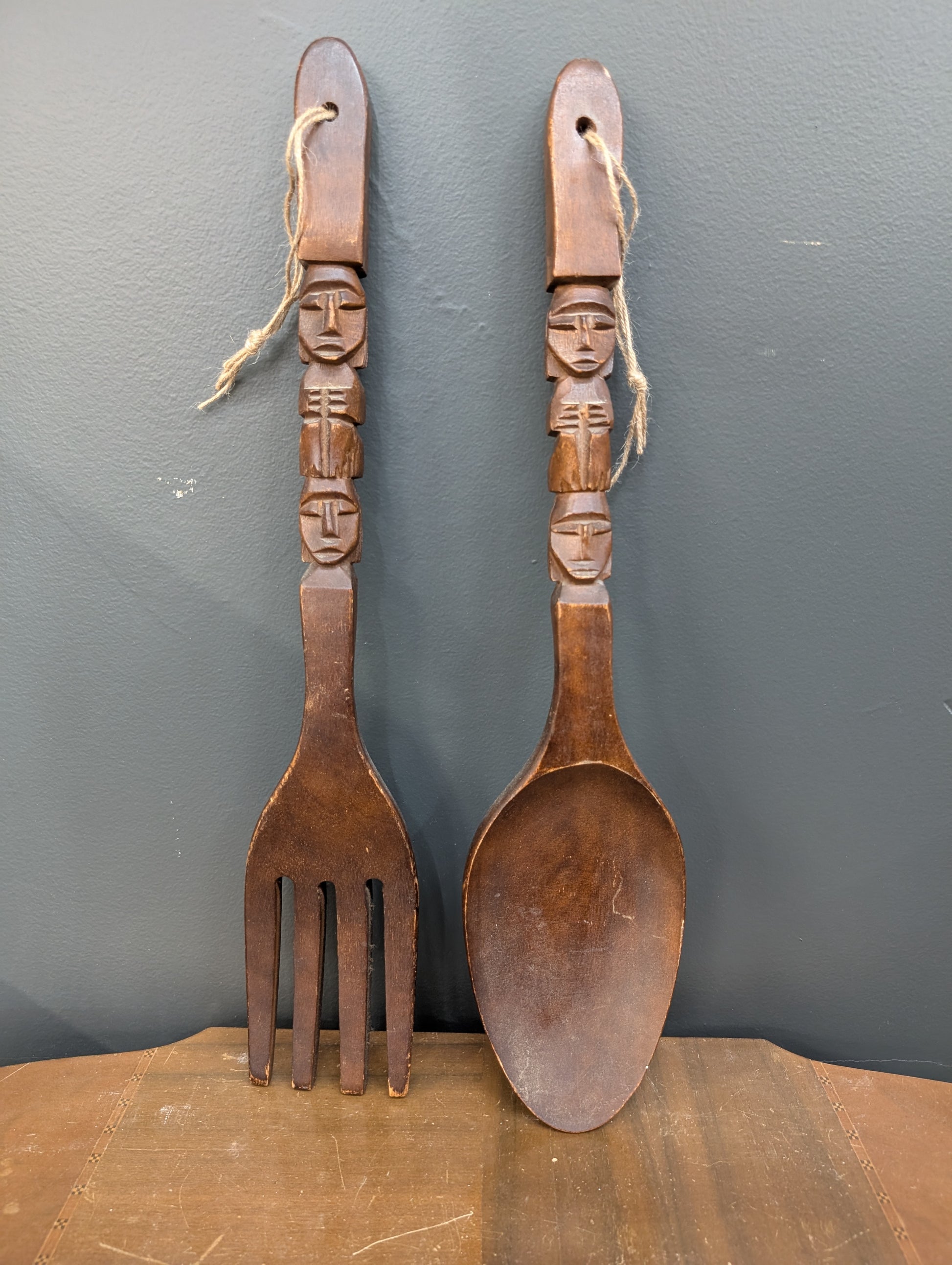 Vintage teak wall fork and spoon